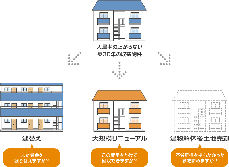 正しい賃貸経営を行い引継ぎをしないと、3つの選択をしないといけないことで迷わせる。